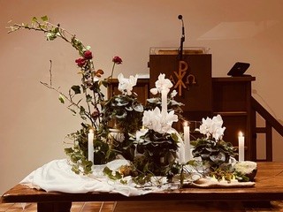 In de schikking staan drie rode rozen: deze symboliseren de drie wijzen die uit het oosten kwamen.