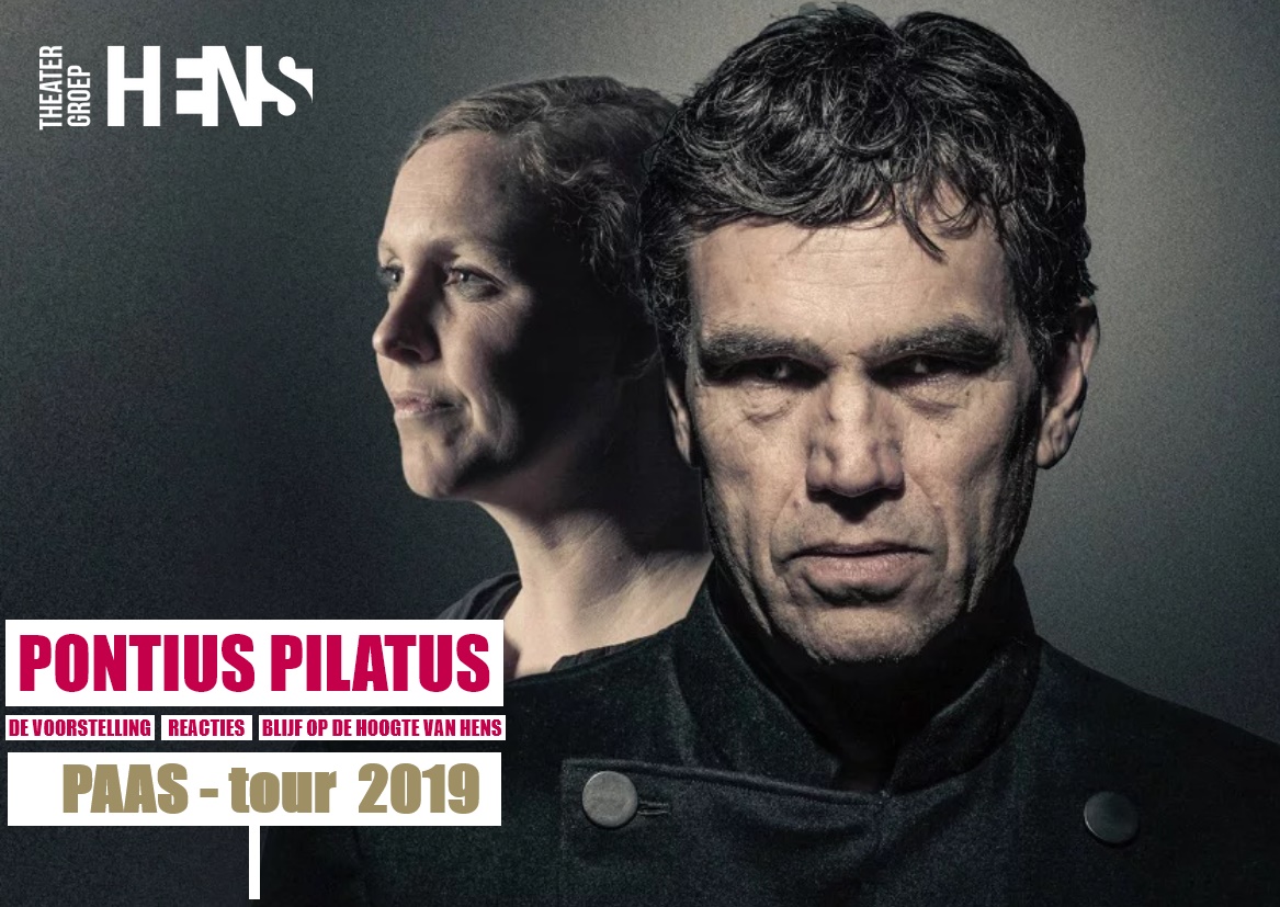 In een moderne enscenering brengt theatergroep HENS Pontius Pilatus ten tonele. Pontius Pilatus is de geschiedenis ingegaan als de ordebewaker van Judea en de man die Jezus veroordeeld heeft. Als blijkt dat het lichaam van Jezus is verdwenen uit het graf, vermoedt Pilatus dat dit onrust zal veroorzaken onder het volk. Hij bijt zich vast in het opsporingswerk en onderwerpt de feiten aan een nauwkeurig onderzoek. Wat is waar? We zien hoe de vraag naar waarheid Pilatus voortdurend kwelt, hoe het hem en zijn vrouw Claudia uit elkaar drijft en hoe hij langzaam de grip verliest op de werkelijkheid. Kun je na de voorstelling nog op dezelfde manier kijken naar deze historische figuur? Bekijk de trailer.